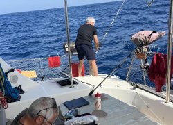 Sinon le temps est superbe et la navigation à bord du catamaran est relativement agréable malgré la surcharge de travail pour l’équipage.