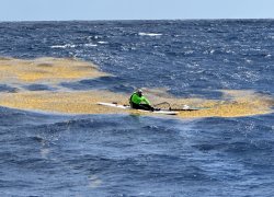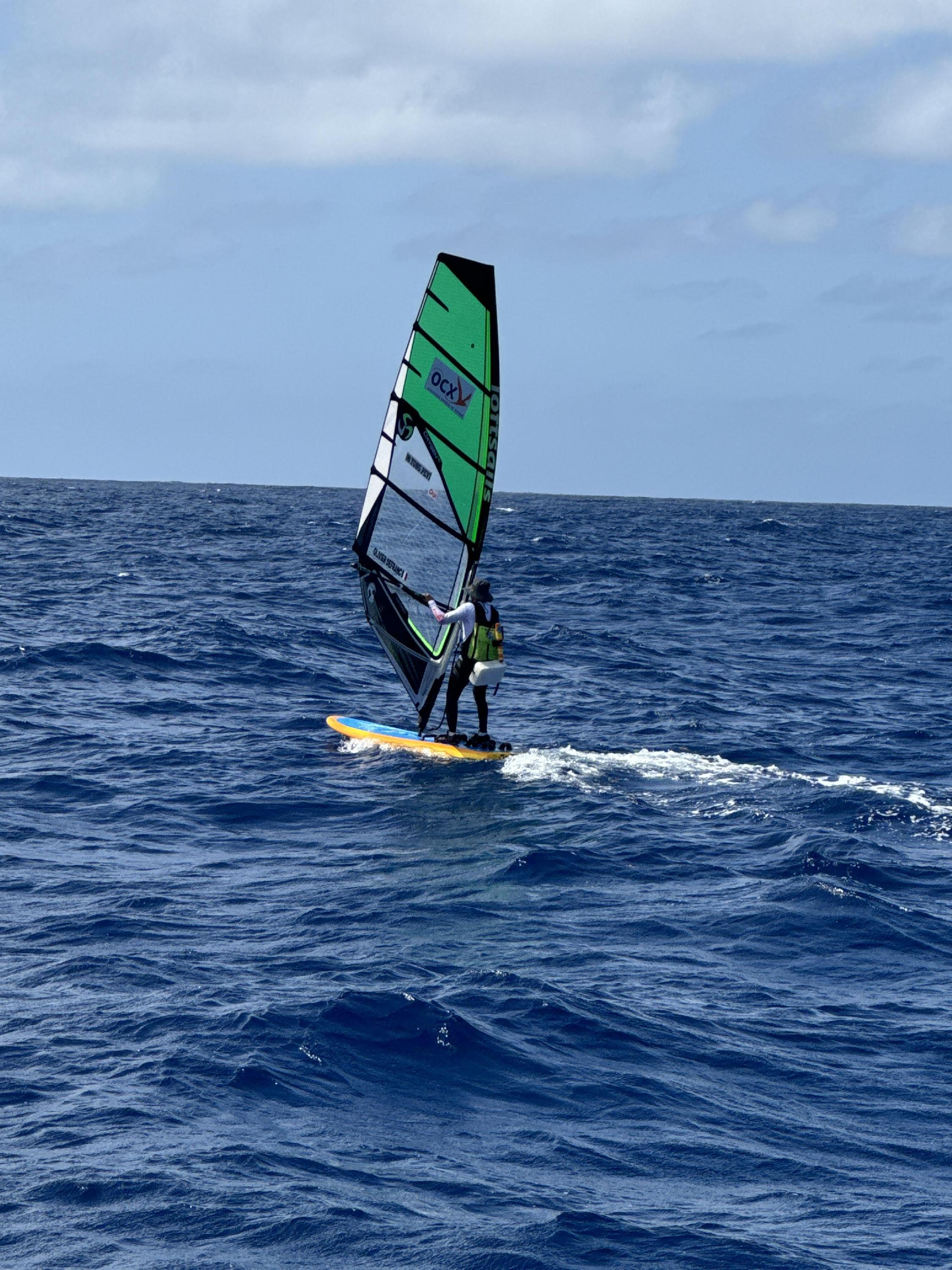 Dix-huit jours de mer, toujours la même motivation, et changement de planche pour naviguer au vent arrière et éviter le courant contraire tropical et profiter d’une petite brise de 15 nds.