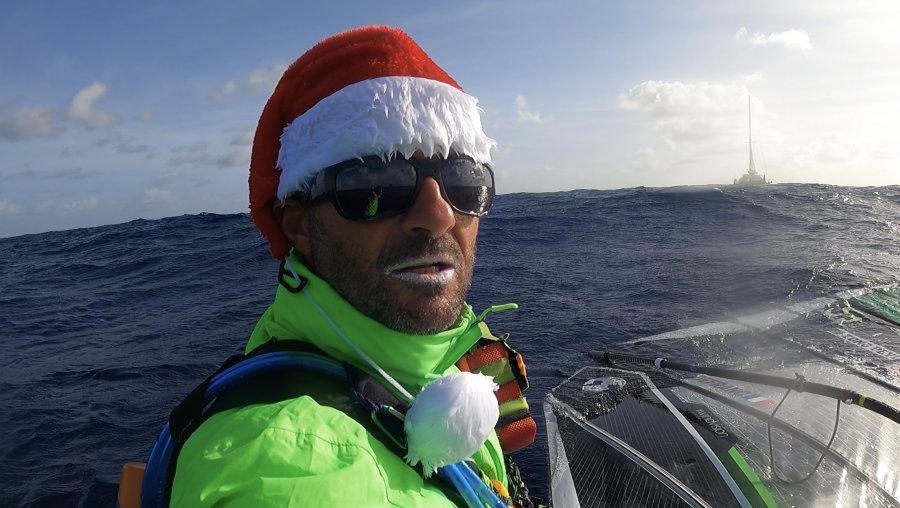 Une journée sous de bons auspices, vraisemblablement 👍 En tout cas Olivier, tu rivalises dur avec le Père Noël, car tes performances nous offrent de bons moments que l'on a plaisir à partager, malgré la distance, grâce aux compte-rendus quotidiens. Et tout l'équipage qui veille sur ta sécurité et ton bien être, mérite également tout notre respect. Continue à prendre du plaisir sur ta planche, Olivier ! Bises
